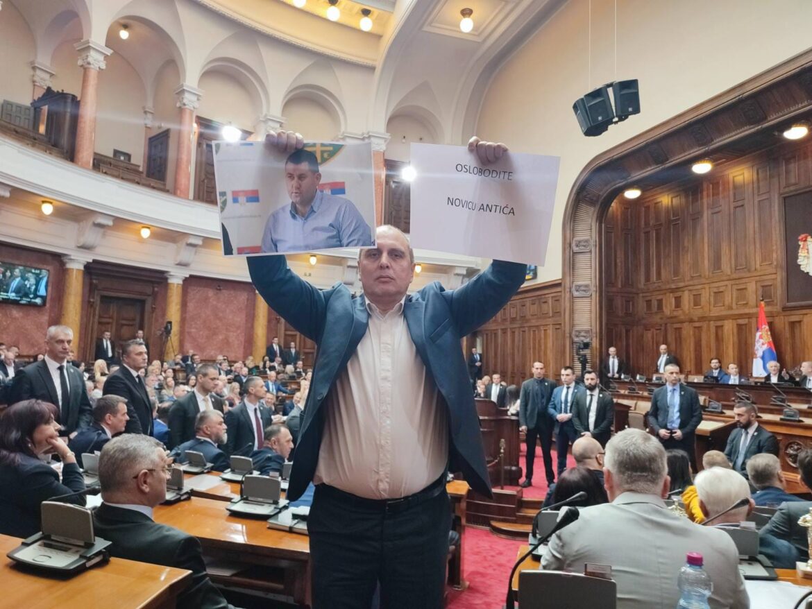 U znak solidarnosti sa Novicom Antićem, predsednikom Vojnog sindikata Srbije, koji je nedavno pritvoren a zatim smenjen sa pozicije pod kontroverznim okolnostima, narodni poslanik Željko Veselinović, predsednik Udruženih sindikata Srbije „Sloga“, nosio je transparente sa slikom pritvorenog sindikalca. Transparenti sa porukom „Oslobodite Novicu Antića“ ističu zahtev za poštovanje prava na slobodu govora i okupljanja, kao i solidarnost među sindikalnim i opozicionim pokretima.