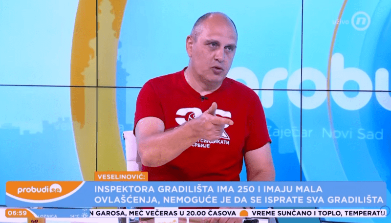 Posle još jedne nesreće na beogradskom gradilištu, u kojoj je radnik stradao padom sa visine od preko dvadeset metara, u jutarnjem programu na televiziji Nova S – „Probudi se“, u segmentu „Reč jutra“ ponovo je otvoreno pitanje bezbednosti na radu. Predsednik Udruženih sindikata Srbije „Sloga“ Željko Veselinović ocenio je da problemi nisu incidentnog karaktera, već posledica sistemske nebrige, nedovoljne kontrole, nesrazmernog broja inspektora i neregulisanog položaja stranih radnika koji sve češće rade na srpskim gradilištima.