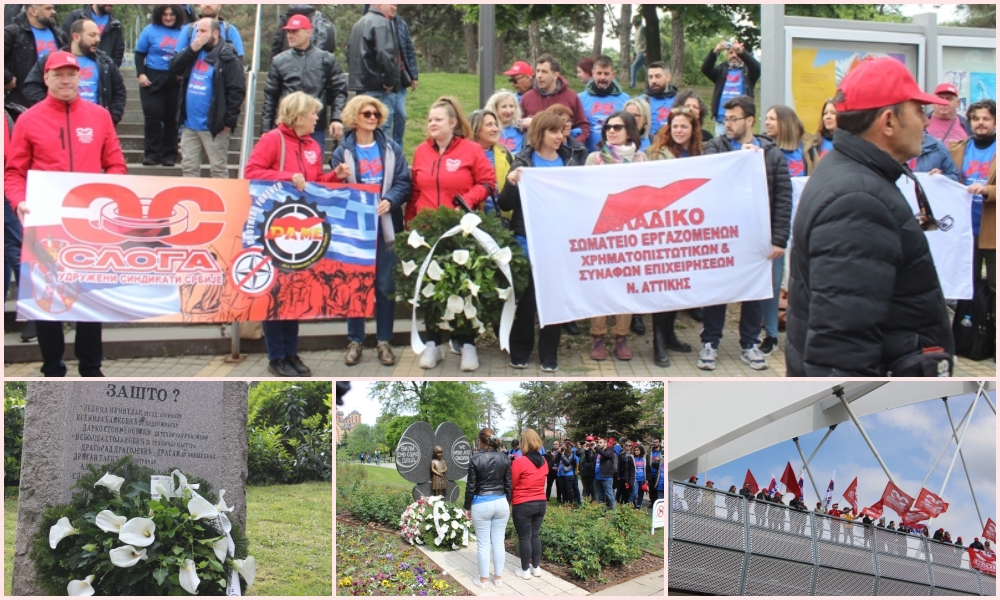Poseban značaj za naš sindikat imala je prošlogodišnja poseta grčkog sindikata P.A.M.E, kada je 250 njegovih članova došlo u Srbiju da se pokloni senima stradalih. Delegacija je posetila bombardovanu zgradu RTS-a i spomenik „Zašto“ u Tašmajdanskom parku, kao i mesto pogibije male Milice Rakić i ruševine Generalštaba – tragove zločina koje se ne smeju zaboraviti.