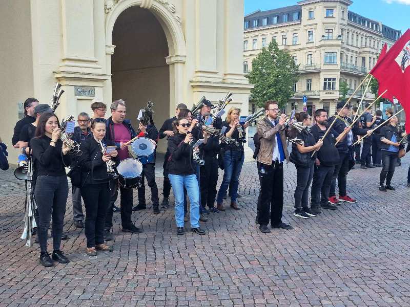 Marš dug gotovo 15 kilometara, koji je trajao više sati, simbolično je povezivao dva istorijska grada i bio obeležen zastavama sindikata, transparentima, muzikom i pesmama posvećenim slobodi i borbi protiv fašizma.