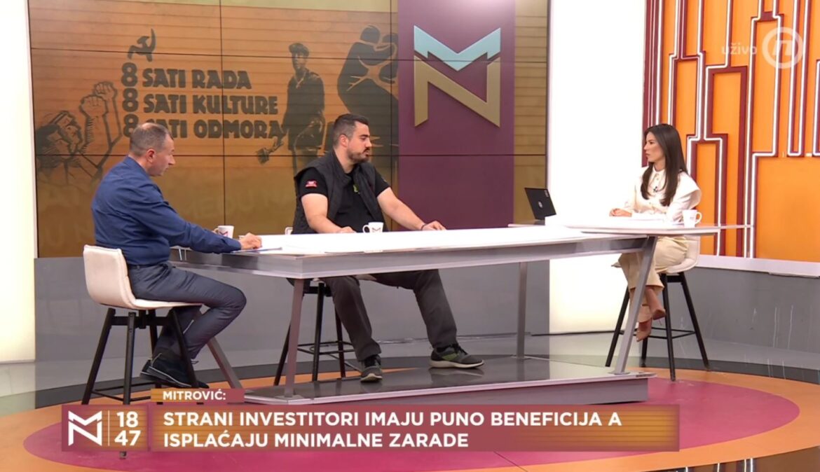 Tokom gostovanja, Stefan Mitrović je izneo zabrinutost vezanu za praksu stranih investitora u Srbiji, ukazujući kako ove prakse utiču na radnička prava. Mitrović je objasnio da strani investitori često dobijaju velike poreske olakšice i druge povlastice, što dovodi do situacije gde domaći radnici postaju jeftina radna snaga.